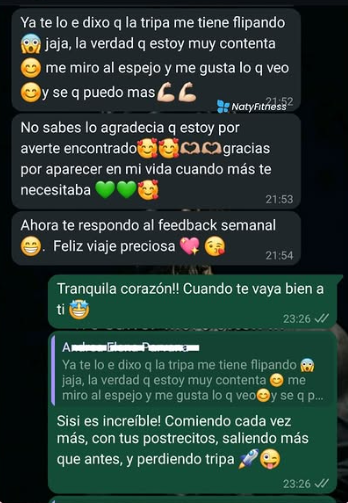 Juntas conseguimos sentirse segura y confiada. Perdimos tripa, tonificamos, y sobre todo, vivir sin obsesiones ni restricciones. Hoy disfruta de su cuerpo, la comida, el deporte, y su mente en paz.