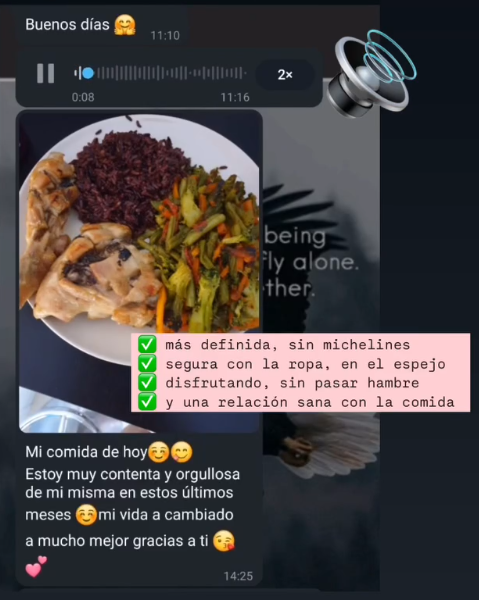 Venía de tener miedo a comer más y engordar de modo que comía poco, casi ni comía grasas o carbohidratos. Si comía no sano se sentía culpable, compensaba. Sufría mucho mentalmente, y padecía un trastorno alimentario al vivir obsesionada.